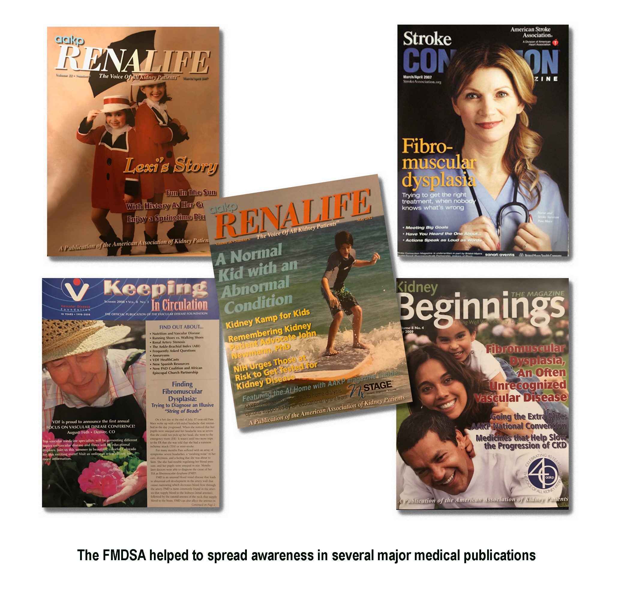 - “Keeping in Circulation” the official publication of the Vascular Disease Foundation featured Fibromuscular Dysplasia in their summer 2008 newsletter.